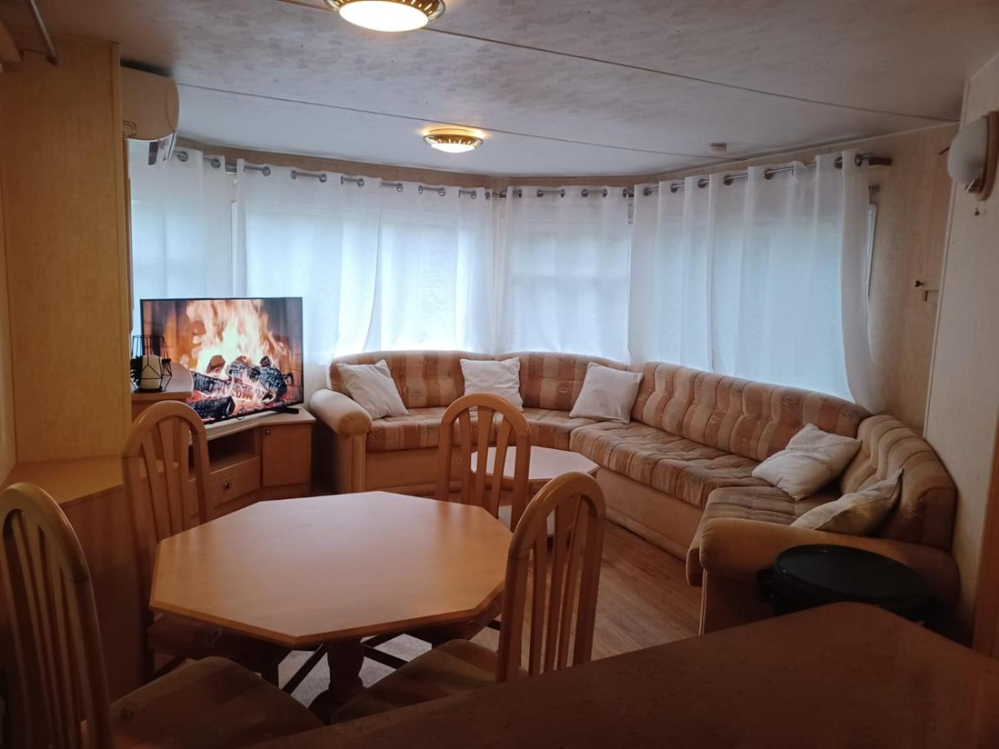 Mobile Home. This mobile home includes 1 living room, 2 separate bedrooms and 1 bathroom with a shower. Guests will find a stovetop, a refrigerator, a dishwasher and kitchenware in the well-equipped kitchen. The mobile home also features a barbecue. Boasting a terrace with lake views, this mobile home also offers a tea and coffee maker and a flat-screen TV. The unit has 4 beds.
