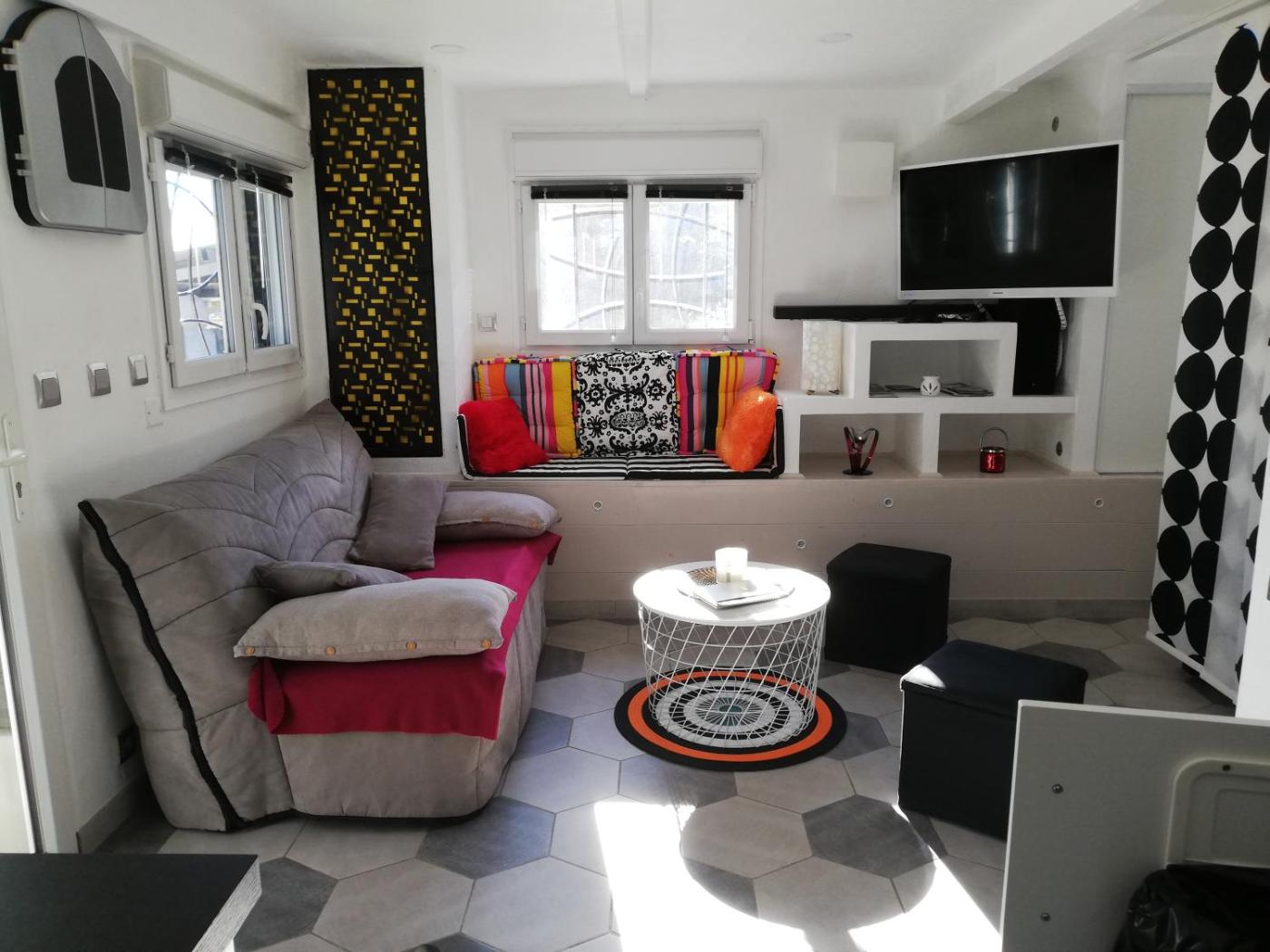 Maison 1 Chambre. Boasting a private entrance, this holiday home features 1 living room, 1 separate bedroom and 1 bathroom with a walk-in shower and a hairdryer. Guests will find a stovetop, a refrigerator, kitchenware and a microwave in the well-fitted kitchen. The holiday home also comes with a barbecue. Featuring a terrace with lake views, this holiday home also features a washing machine and a flat-screen TV. The unit has 2 beds.