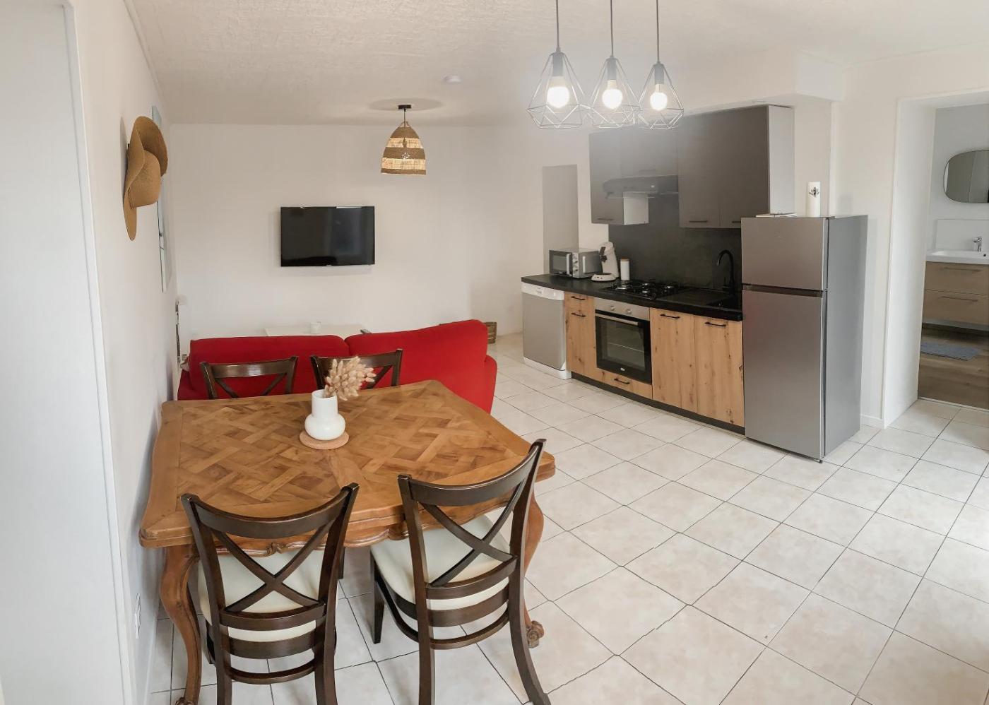 Maison 2 Chambres. Boasting a private entrance, this holiday home includes a kitchen, 2 bedrooms and 1 bathroom with a shower and a hairdryer. Guests will find a dishwasher, kitchenware, an oven and a microwave in the kitchen. The holiday home also features a barbecue. Featuring a terrace, this holiday home also offers a coffee machine, a high chair for children and a TV. The unit has 2 beds.