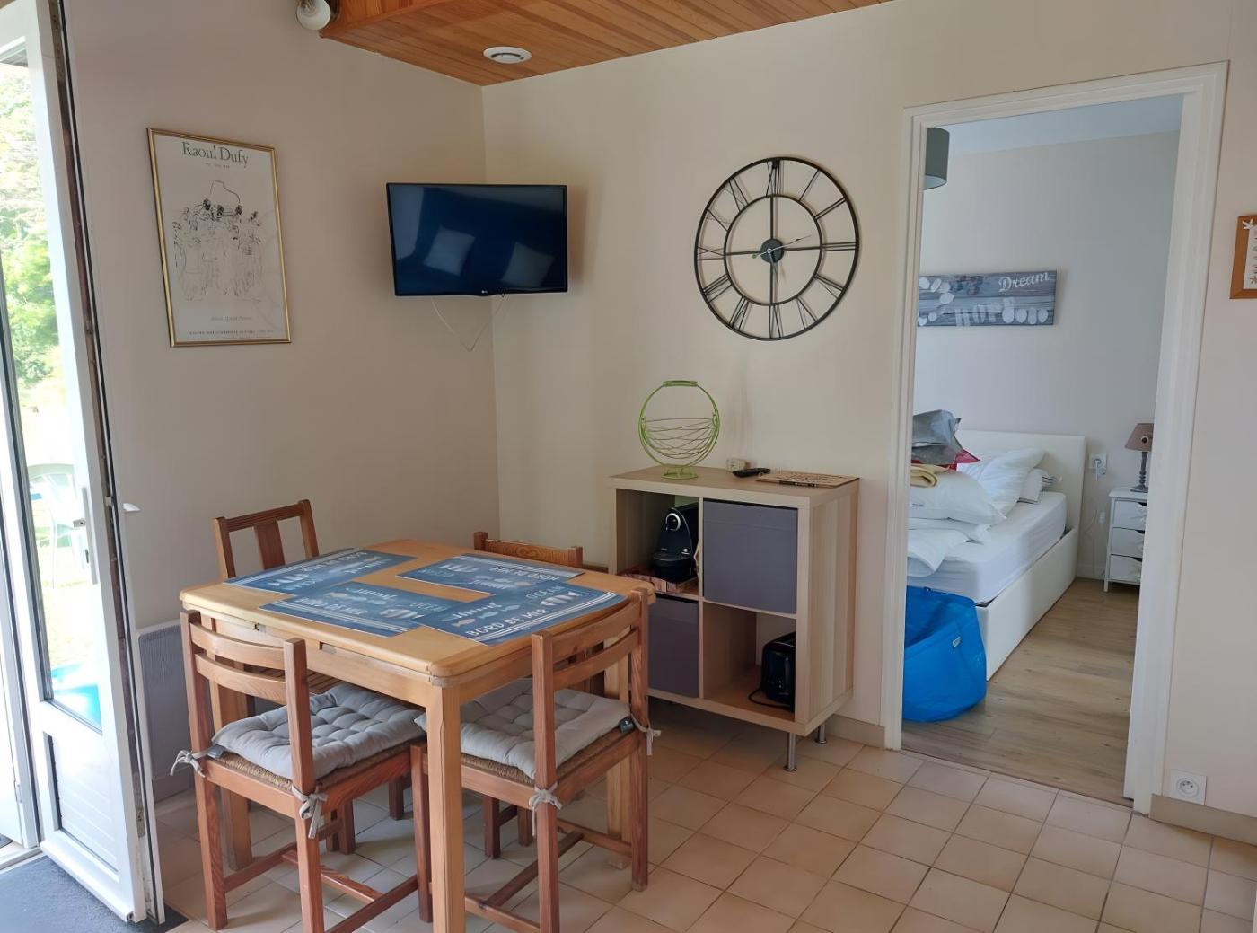 Maison 1 Chambre. This holiday home features 1 living room, 1 separate bedroom and 1 bathroom with a shower. Guests will find kitchenware, an oven, a microwave and a toaster in the fully equipped kitchen. The holiday home also comes with a barbecue. Boasting a terrace with garden views, this holiday home also features a coffee machine and a TV. The unit has 2 beds.