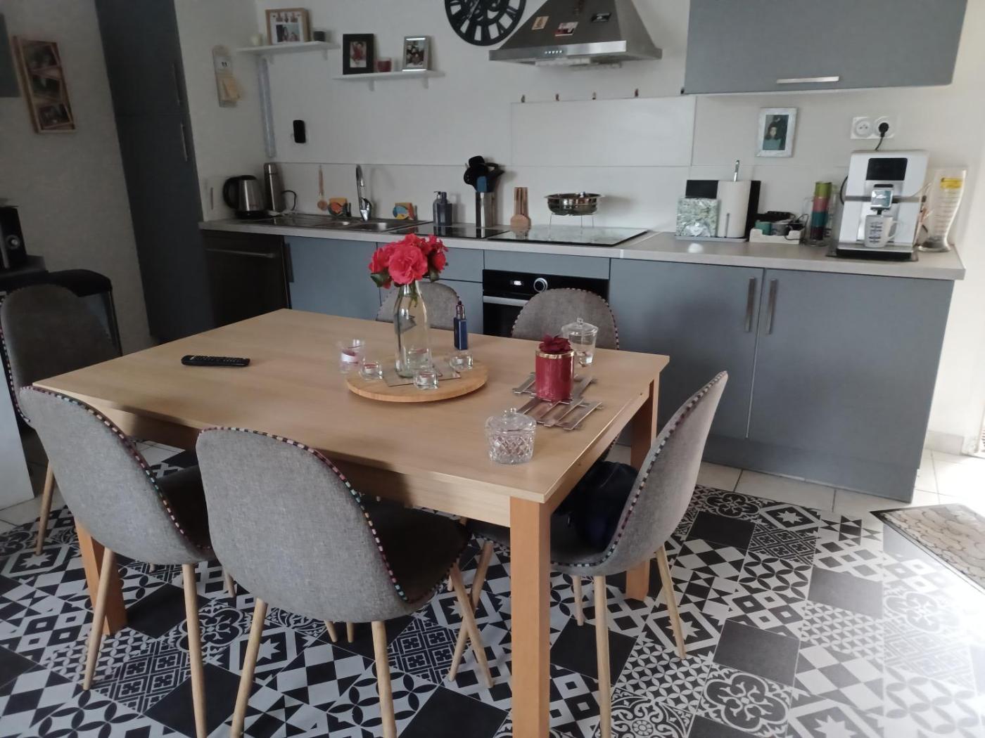 Chambre Double. The double room features a tea and coffee maker, a dining area, as well as a shared bathroom boasting a shower and a hairdryer. This double room has a wardrobe, heating, a flat-screen TV and a terrace. The unit has 1 bed.