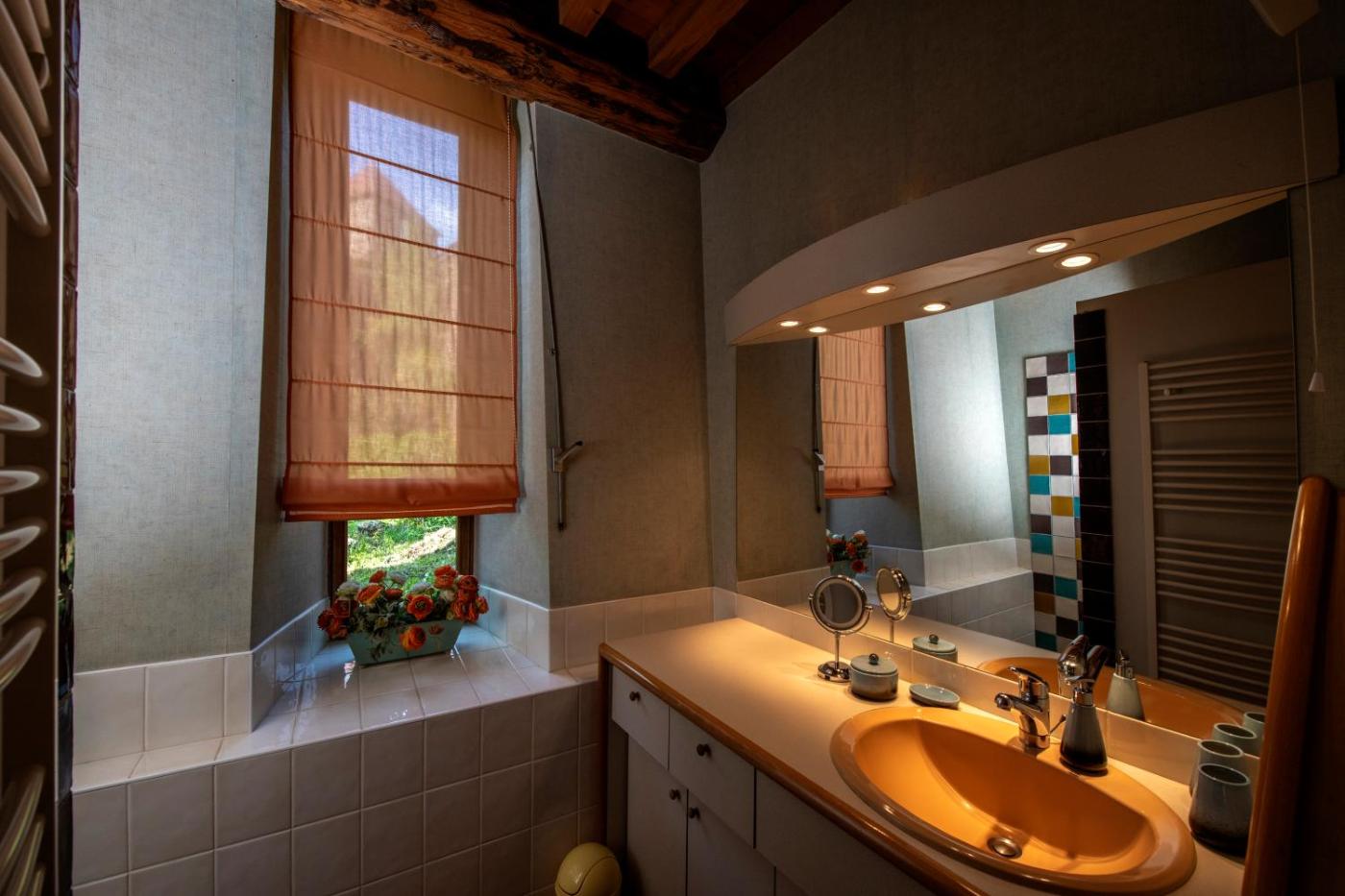 Chambre Familiale avec Balcon. Dotée dun balcon avec vue sur la campagne, cette chambre présente des murs en pierre et des poutres apparentes. Vous profiterez dune entrée privée et dun coin salon. La salle de bains privative est pourvue d’une douche. Cet hébergement est uniquement accessible par des marches. ;