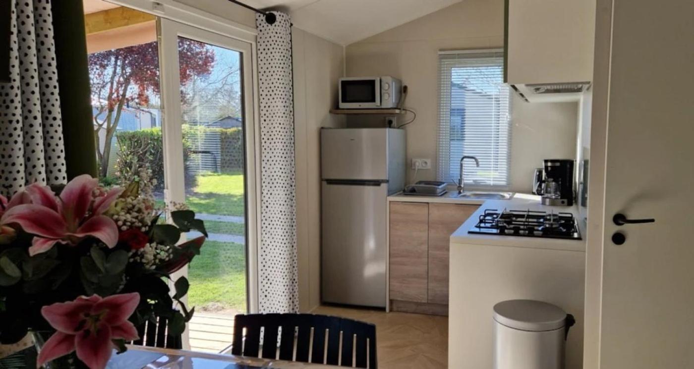 Mobile Home 2 Chambres. Boasting a private entrance, this mobile home comes with 2 bedrooms and 1 bathroom with a shower. Guests will find a stovetop, a refrigerator, kitchenware and a microwave in the kitchen. The mobile home also includes a barbecue. This mobile home features a tea and coffee maker, a TV and an outdoor dining area. The unit has 3 beds. ;