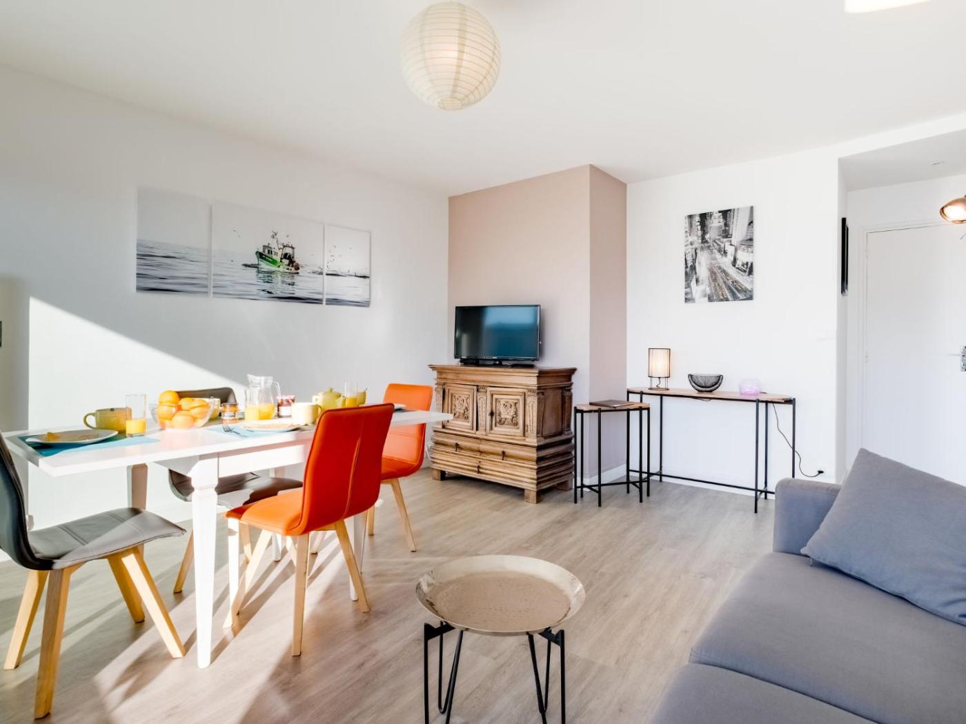 Disposant d’un balcon et offrant une vue sur la mer, cet appartement comprend 1 chambre, un salon, une télévision, une cuisine équipée avec un réfrigérateur et un lave-vaisselle, ainsi que 1 salle de bains avec une douche. Cet hébergement 3 étoiles possède un parking privé gratuit ainsi qu’une connexion Wi-Fi gratuite dans l’ensemble de ses locaux.