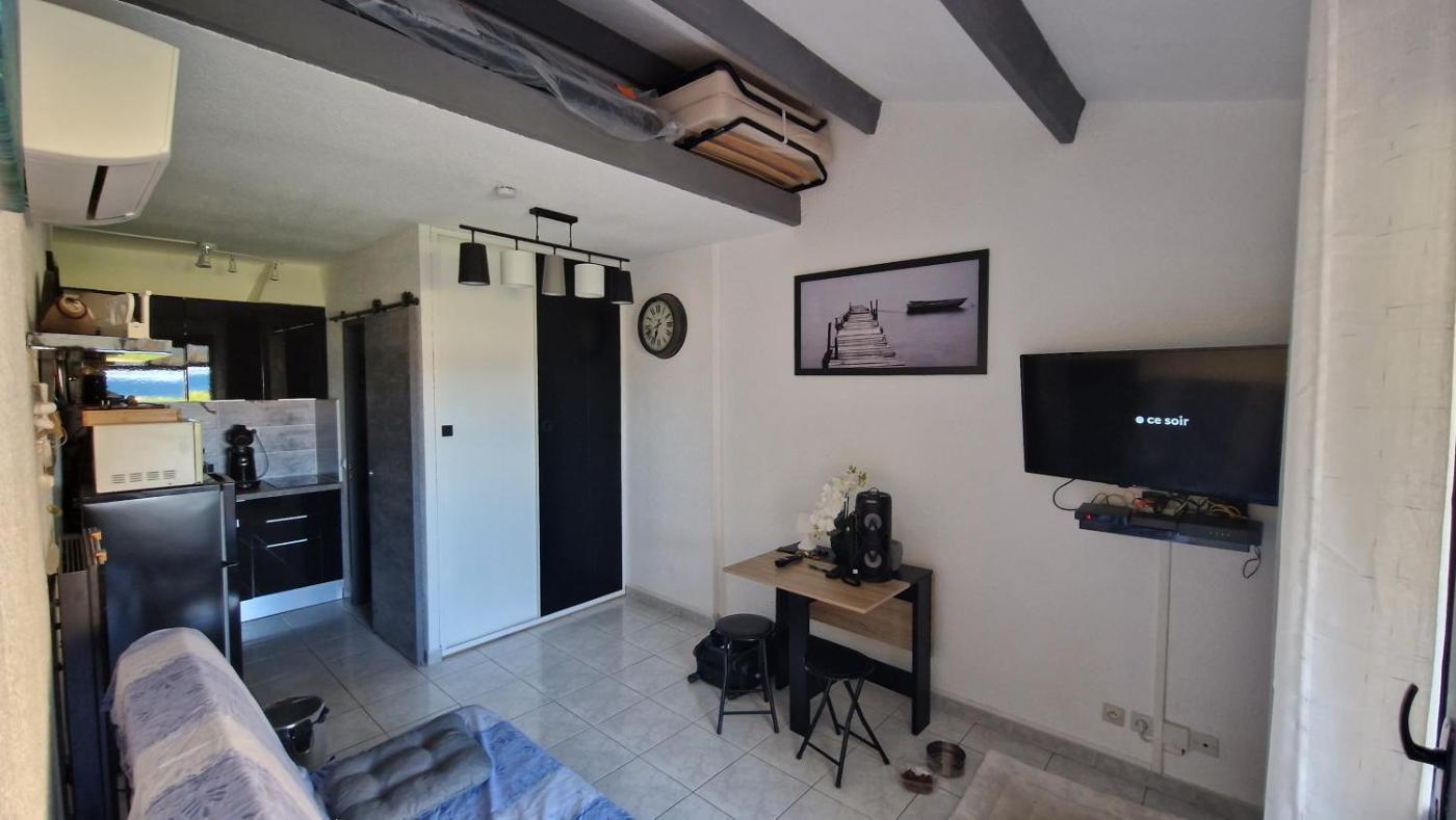 Appartement - Vue sur Mer. Guests will find a refrigerator, kitchenware, an oven and a microwave in the kitchen. The apartment also features a barbecue. This air-conditioned apartment is comprised of a flat-screen TV with streaming services, a private bathroom as well as a terrace with sea views. The unit has 1 bed.