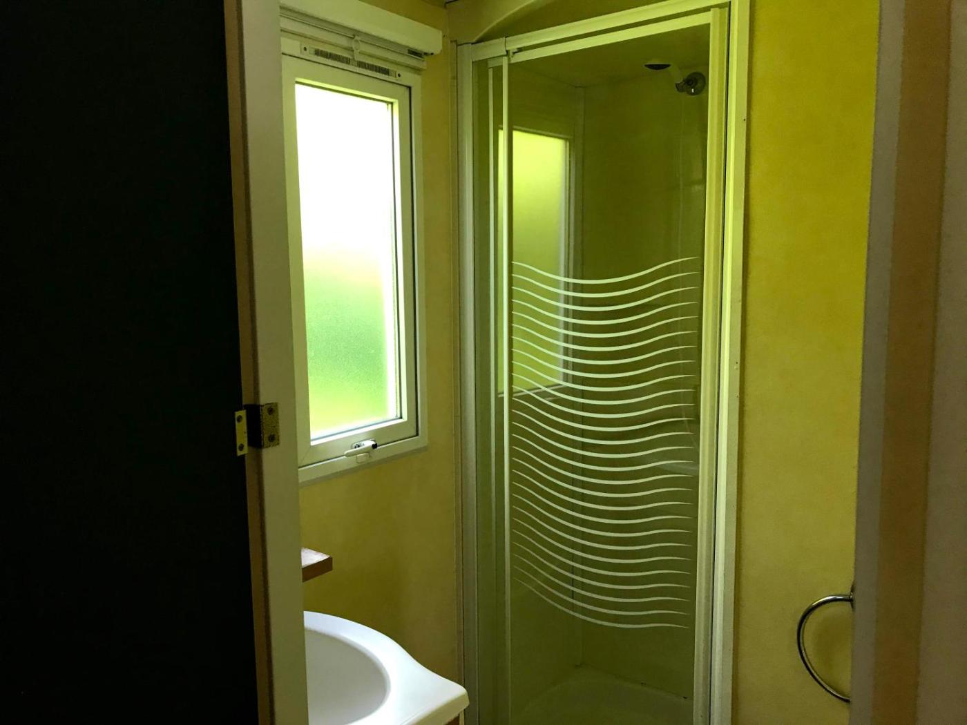 Mobile Home. This mobile home includes 1 living room, 2 separate bedrooms and 1 bathroom with a shower. Guests can make meals in the kitchenette that is fitted with a stovetop, a refrigerator, kitchenware and a microwave. The mobile home has a tea and coffee maker, a dining area, heating as well as a terrace with garden views. The unit has 3 beds. ;