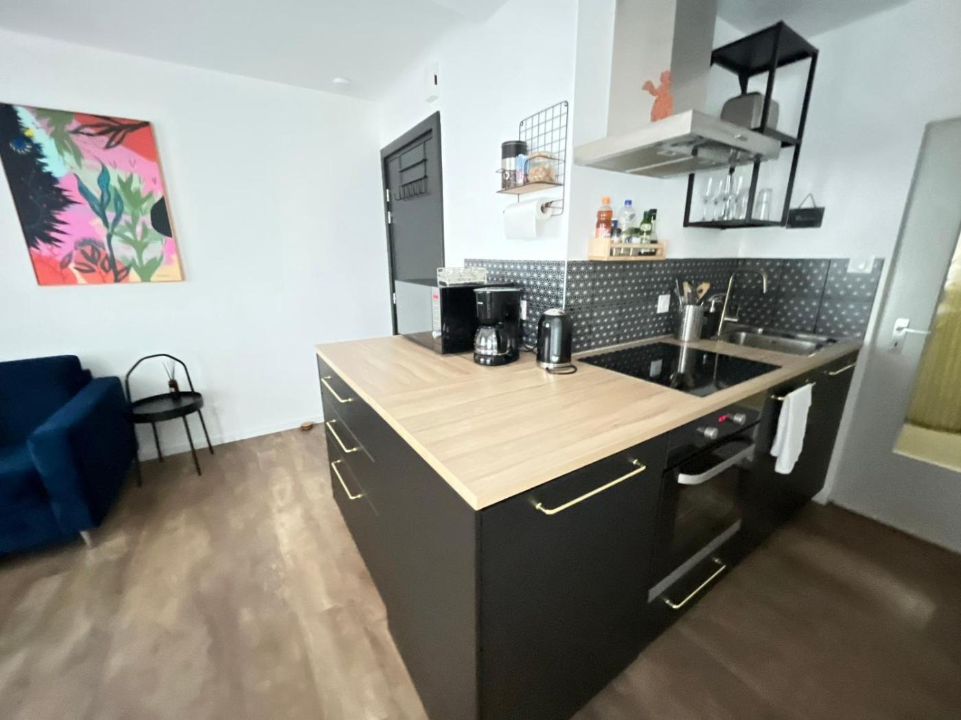 Appartement 1 Chambre. Boasting a private entrance, this apartment features 1 living room, 1 separate bedroom and 1 bathroom with a shower and a hairdryer. In the well-fitted kitchen, guests will find a stovetop, a refrigerator, a dishwasher and kitchenware. The apartment has parquet floors, a seating area with a flat-screen TV, a washing machine, a tea and coffee maker as well as ancourtyard view. The unit has 1 bed.