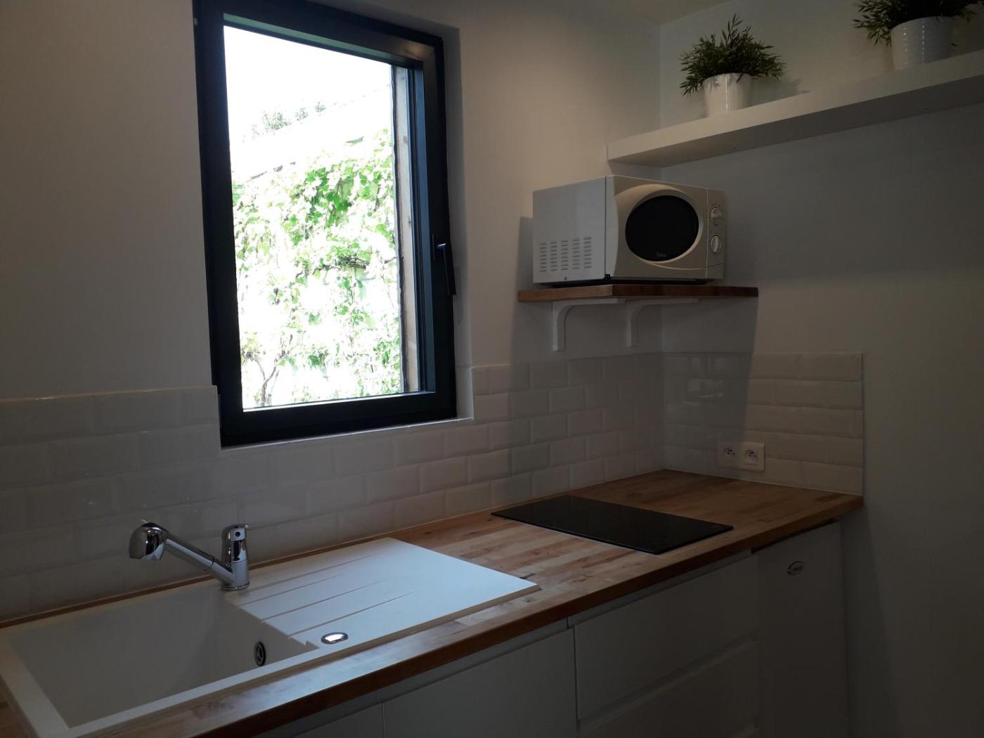 Appartement - Vue sur Jardin. Boasting a private entrance, this apartment comes with 1 living room, 1 separate bedroom and 1 bathroom with a shower and a hairdryer. Guests can make meals in the kitchen that features a stovetop, a refrigerator, kitchenware and a microwave. Featuring a terrace with garden views, this apartment also features a washing machine and a flat-screen TV. The unit has 1 bed.