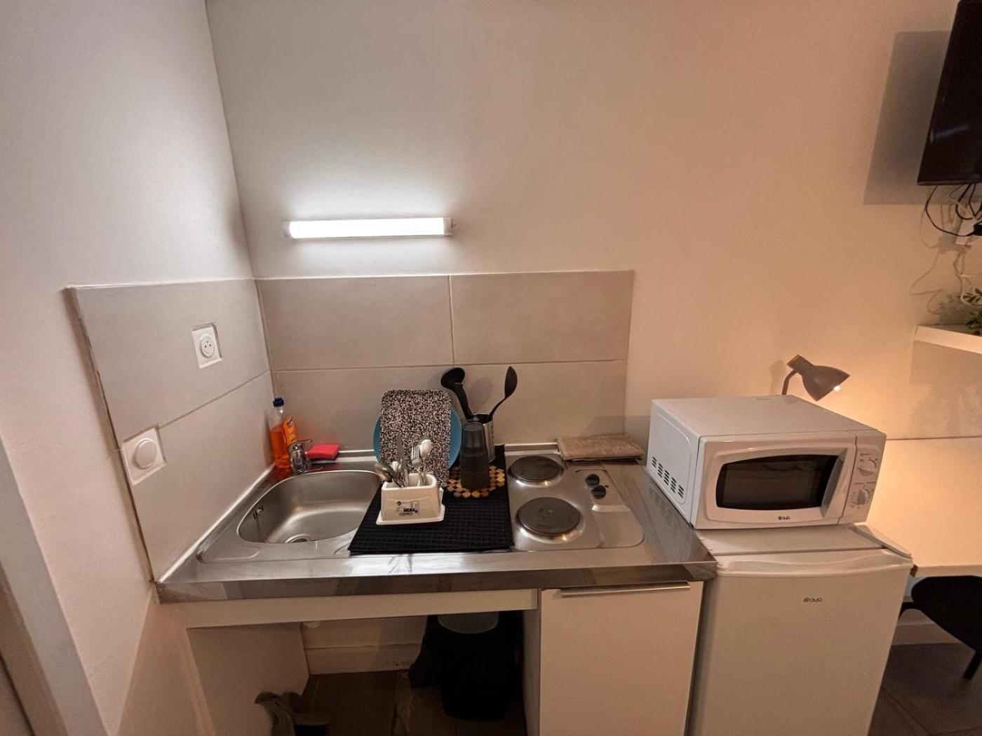 Chambre Double. Offering free toiletries, this double room includes a private bathroom with a walk-in shower. In the well-equipped kitchenette, guests will find a stovetop, a refrigerator, kitchenware and a microwave. The double room offers a flat-screen TV, a dining area, an electric kettle and heating. The unit has 1 bed.