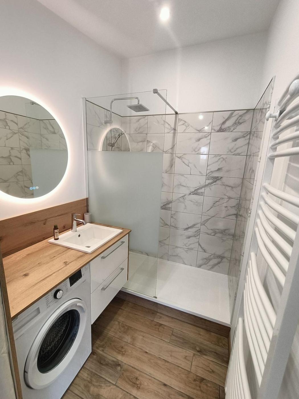 Maison 2 Chambres. This holiday home comprises 1 living room, 2 separate bedrooms and 1 bathroom with a shower and a hairdryer. The well-fitted kitchen features a stovetop, a refrigerator, a dishwasher and kitchenware. Featuring a terrace with garden views, this holiday home also provides a washing machine and a flat-screen TV. The unit offers 3 beds.