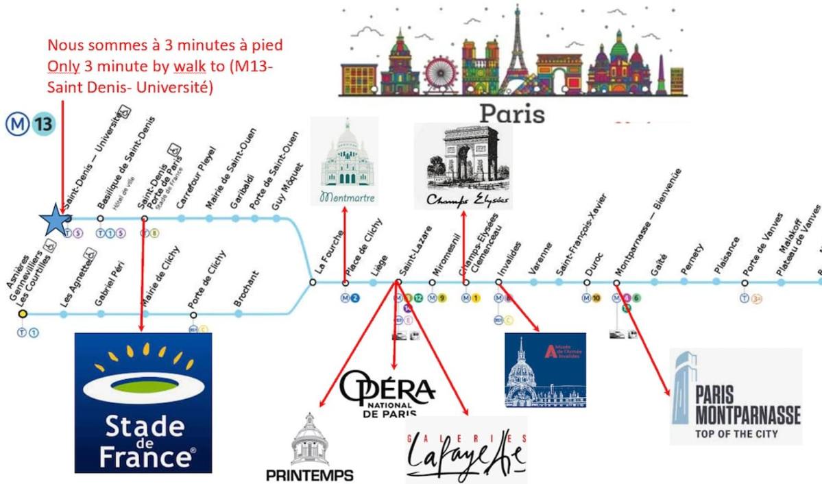 Vous séjournerez à respectivement 10 km et 10 km de ces lieux d’intérêt : Gare du Nord et Gare de lEst. Laéroport le plus proche (Aéroport de Paris - Roissy - Charles-de-Gaulle) est à 14 km.