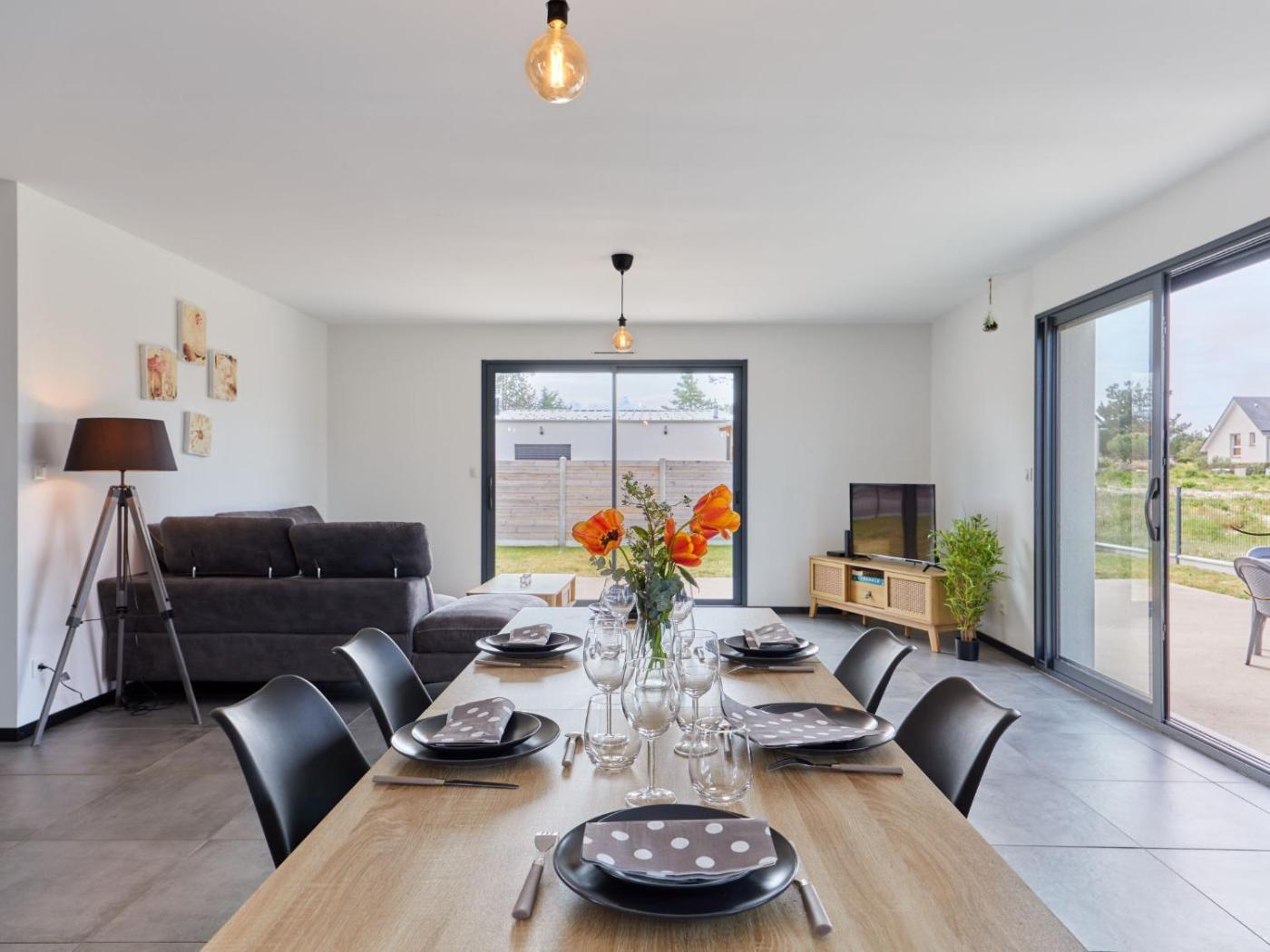 Cette maison de vacances comprend 3 chambres, une télévision, une cuisine équipée avec un réfrigérateur et un lave-vaisselle, un lave-linge, ainsi que 2 salles de bains avec une douche.