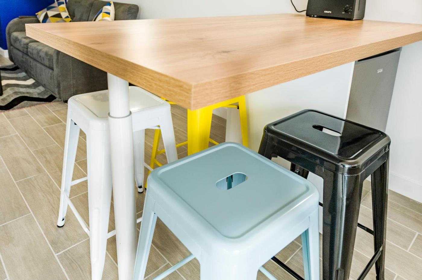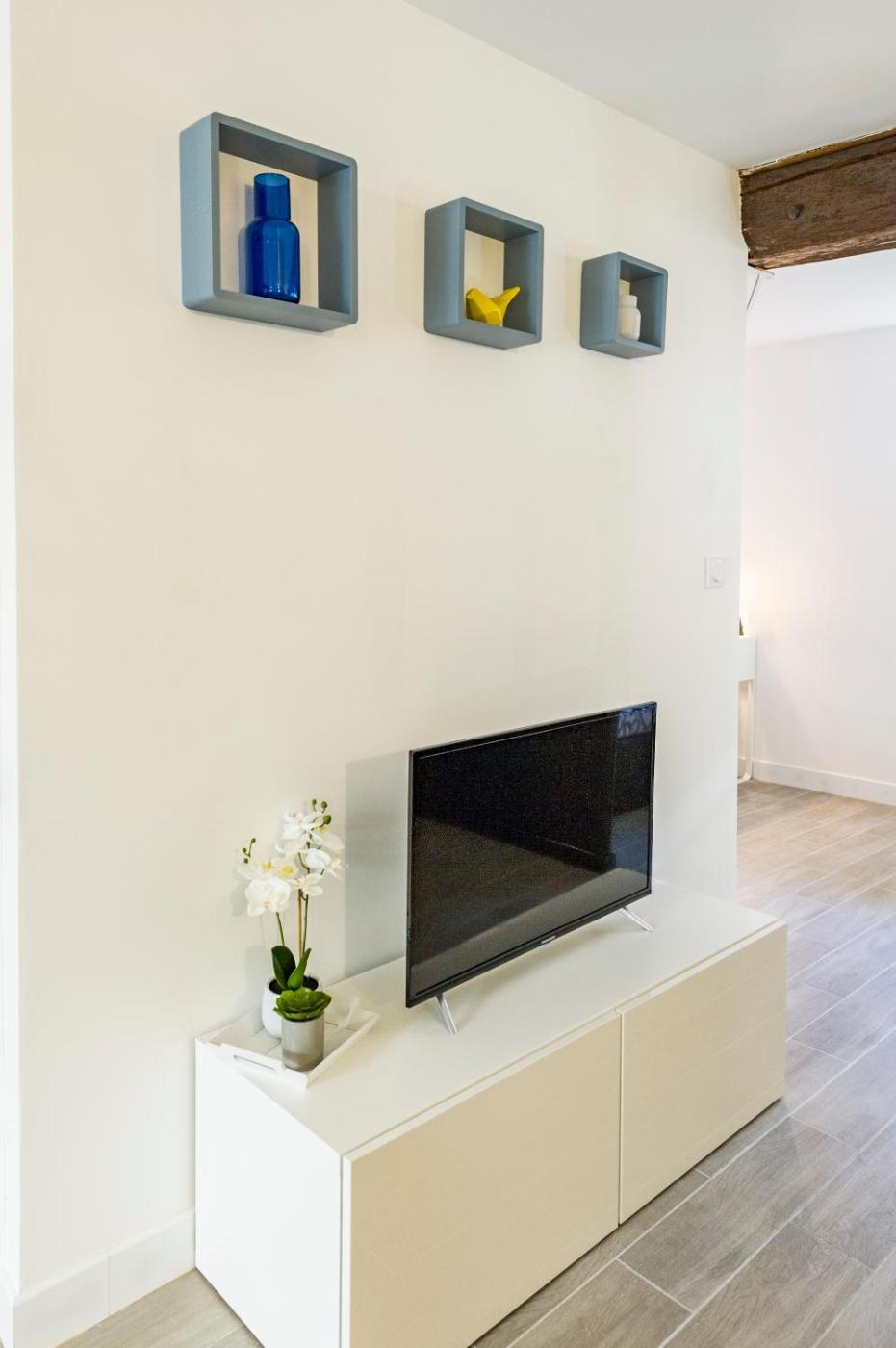Cet appartement se compose de 1 chambre, dun salon, dune cuisine entièrement équipée avec un réfrigérateur et une machine à café, ainsi que de 1 salle de bains avec une douche et des articles de toilette gratuits. Des serviettes et du linge de lit sont à votre disposition.