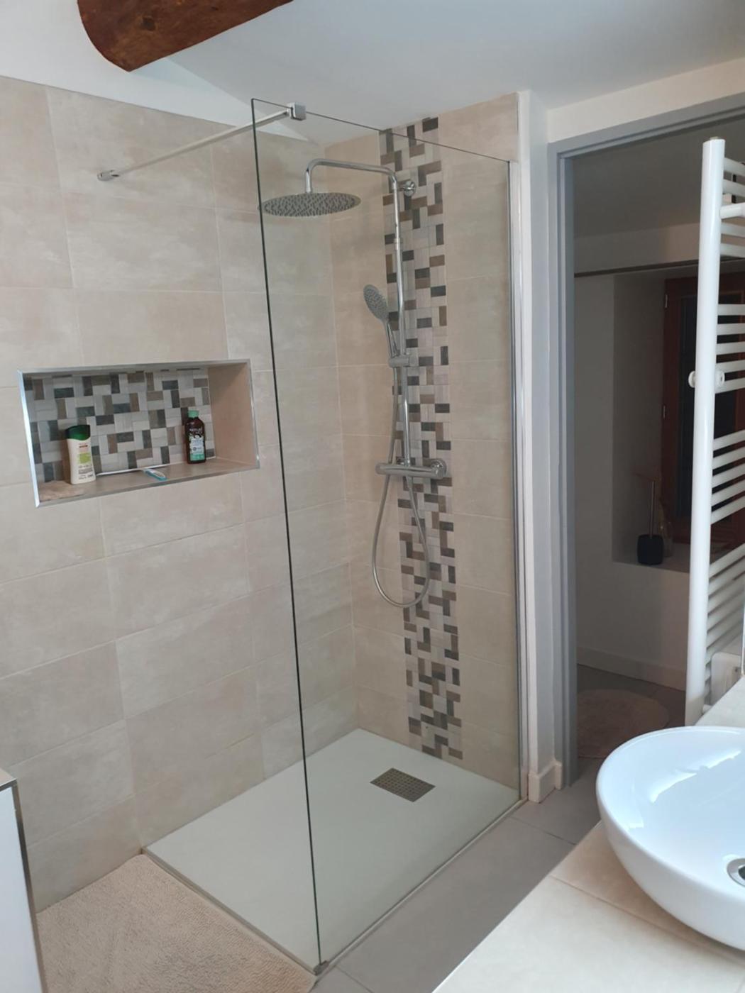 Chambre Double avec Salle de Bains Privative. The double room features a private entrance, a tea and coffee maker, a terrace with garden views as well as a private bathroom boasting a walk-in shower. The unit has 1 bed.