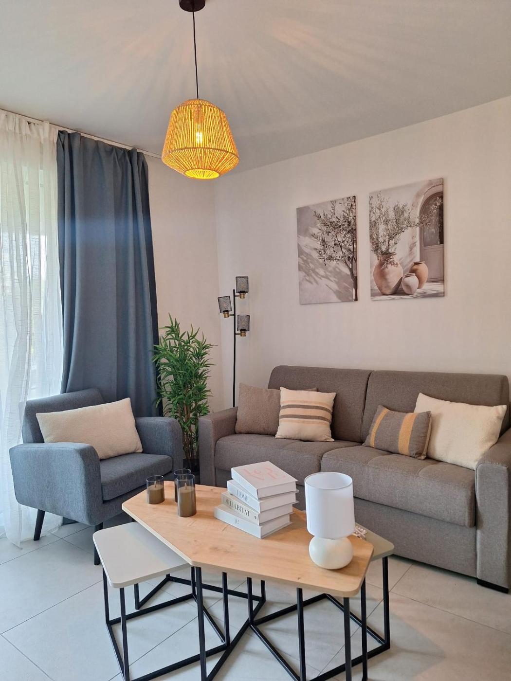 Appartement 1 Chambre. This apartments standout feature is the private pool. Boasting a private entrance, this air-conditioned apartment includes 1 living room, 1 separate bedroom and 1 bathroom with a walk-in shower and a hairdryer. Meals can be prepared in the kitchen, which is fitted with a stovetop, a refrigerator, a dishwasher and kitchenware. This apartment has a washing machine, a tea and coffee maker, a flat-screen TV and a terrace. The unit has 3 beds.