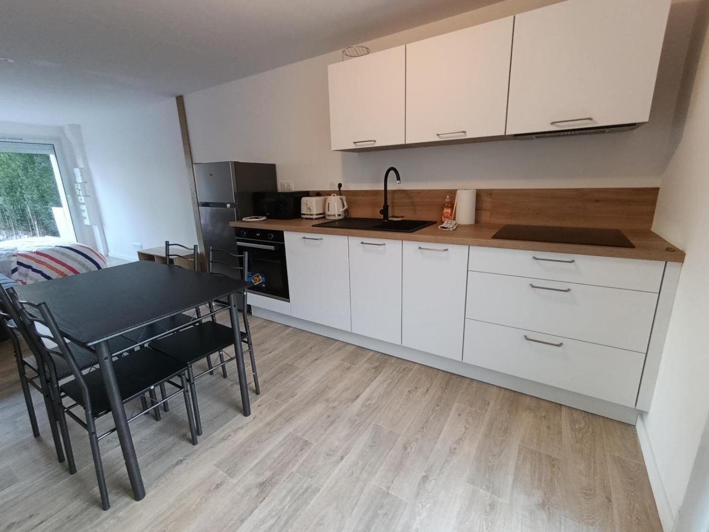 Appartement 1 Chambre. Boasting a private entrance, this apartment features 1 living room, 1 separate bedroom and 1 bathroom with a walk-in shower and a hairdryer. Meals can be prepared in the well-fitted kitchen, which has a stovetop, a refrigerator, kitchenware and an oven. Featuring a terrace with garden views, this apartment also features a washing machine and a flat-screen TV. The unit has 2 beds.