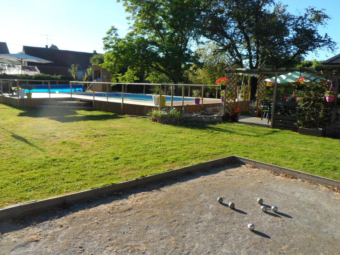 Chambre Double avec Salle de Bains Privative. This double rooms special feature is the pool with a view. Providing free toiletries and bathrobes, this double room includes a private bathroom with a walk-in shower, a bath or a shower and a hairdryer. The double room is furnished with a desk and a seating area and provides a tea and coffee maker, a wardrobe and garden views. The unit offers 1 bed. ;