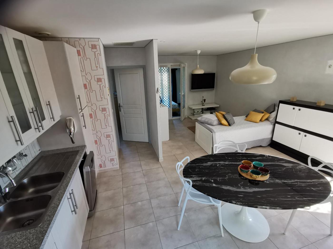 Appartement 1 Chambre. This apartment features a pool with a view. Featuring a private entrance, this air-conditioned apartment is comprised of 1 living room, 1 separate bedroom and 1 bathroom with a shower and a hairdryer. The well-fitted kitchen features a stovetop, a refrigerator, a dishwasher and kitchenware. Boasting a terrace with garden views, this apartment also offers soundproof walls and a flat-screen TV. The unit offers 2 beds.