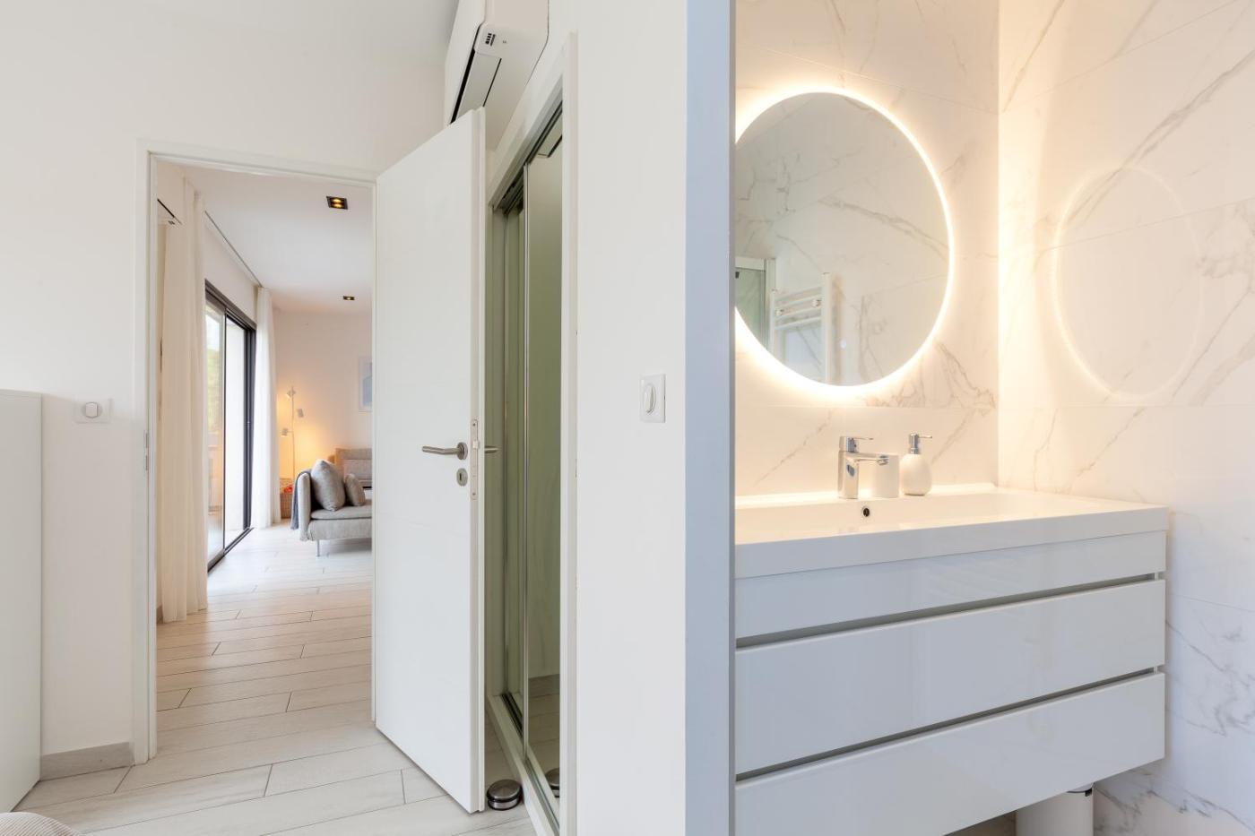 Villa Supérieure. Featuring a private entrance, this air-conditioned villa comprises 1 living room, 4 separate bedrooms and 3 bathrooms with a bath and a shower. Guests will find a stovetop, a refrigerator, a dishwasher and kitchenware in the well-fitted kitchen. The villa also provides guests with a barbecue. Boasting a terrace with sea views, this villa also provides a washing machine and a flat-screen TV with cable channels. The unit offers 4 beds.