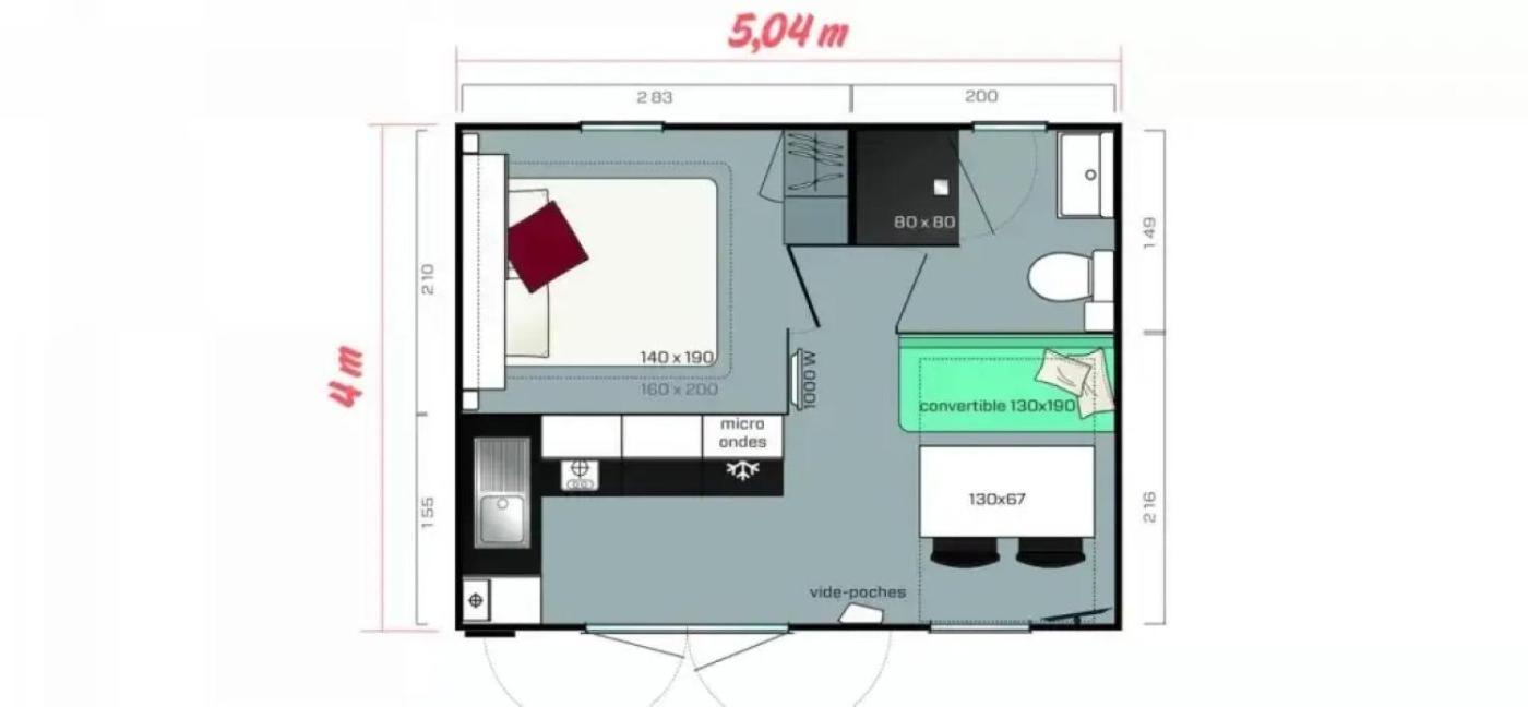 Mobile Home. Featuring a private entrance, this mobile home consists of 1 living room, 2 separate bedrooms and 1 bathroom with a shower. Guests will find a stovetop, a refrigerator, kitchenware and a microwave in the well-fitted kitchen. The mobile home also offers a barbecue. The mobile home features an outdoor dining area. The unit offers 4 beds. ;