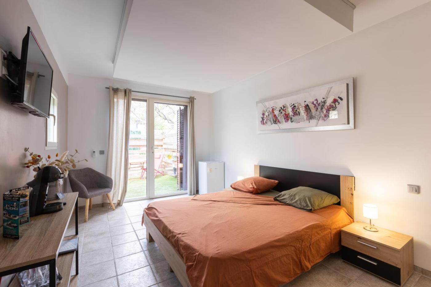 Chambre Standard Lit Queen-Size. This double room features a hot tub. The double room provides air conditioning, a coffee machine, as well as a private bathroom featuring a shower and a hairdryer. This double room offers a TV. The unit offers 1 bed.
