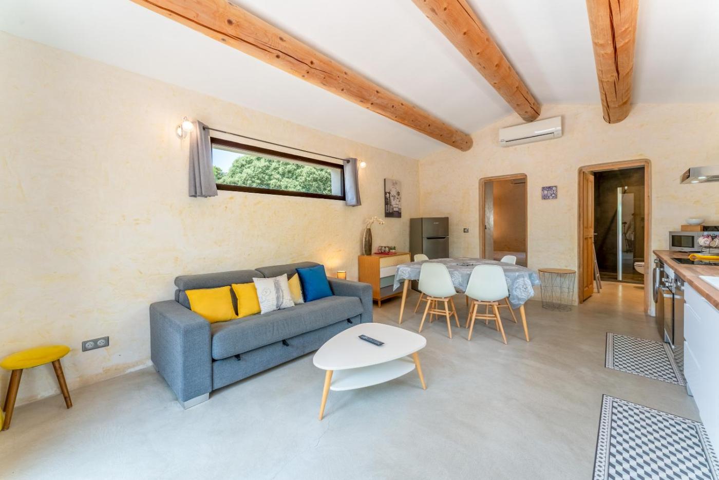 Maison 1 Chambre. Boasting a private entrance, this air-conditioned holiday home features 1 living room, 1 separate bedroom and 1 bathroom with a shower and a hairdryer. In the well-equipped kitchen, guests will find a dishwasher, kitchenware, an oven and a microwave. This holiday home has a washing machine, a coffee machine, a TV with cable channels and a terrace. The unit has 2 beds.