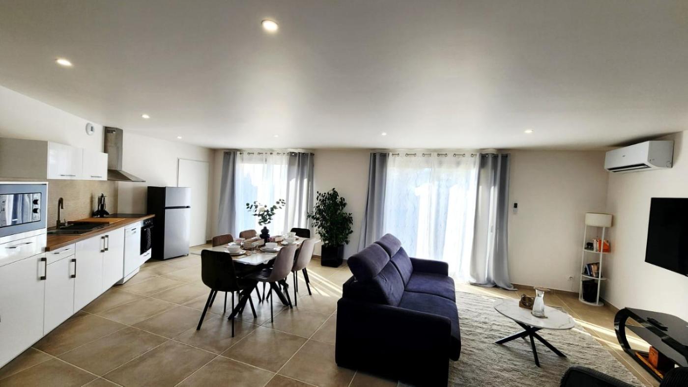 Maison 2 Chambres. Featuring a private entrance, this air-conditioned holiday home comprises 1 living room, 2 separate bedrooms and 1 bathroom with a walk-in shower and a hairdryer. Guests will find a stovetop, a refrigerator, a dishwasher and kitchenware in the fully equipped kitchen. The holiday home also provides guests with a barbecue. Boasting a terrace with garden views, this holiday home also provides a washing machine and a flat-screen TV. The unit offers 3 beds.