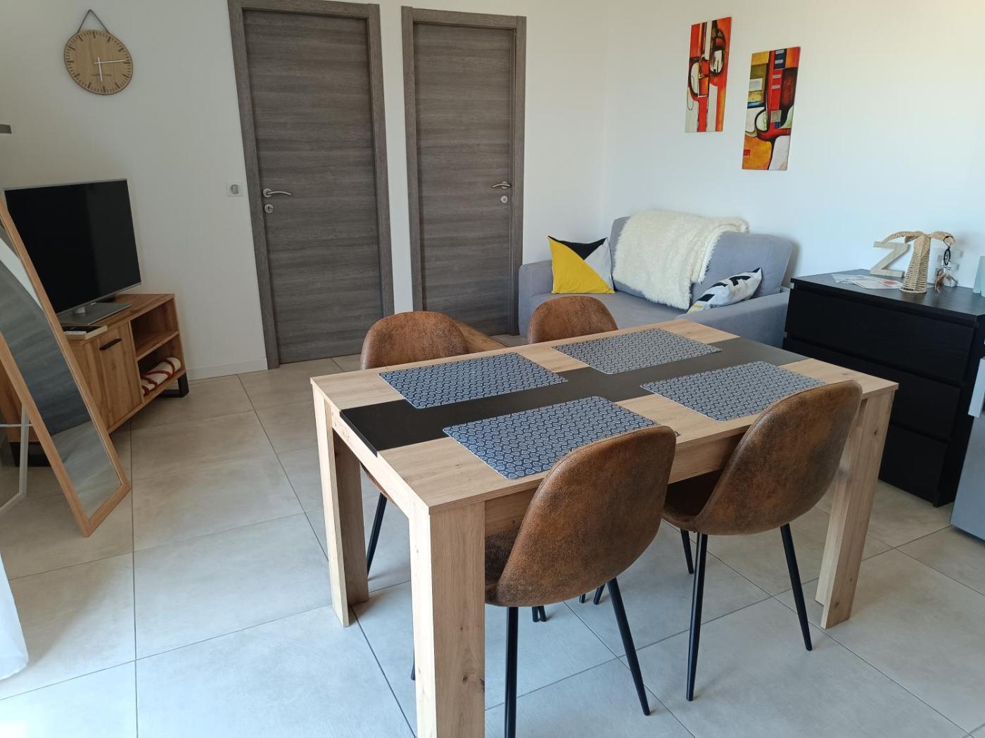 Appartement 1 Chambre. Boasting a private entrance, this air-conditioned apartment features a kitchen, 1 bedroom and 1 bathroom with a shower and a hairdryer. Guests will find a stovetop, a refrigerator, a dishwasher and kitchenware in the well-equipped kitchen. The apartment also comes with a barbecue. Featuring a terrace with sea views, this apartment also features a washing machine and a flat-screen TV. The unit has 1 bed.