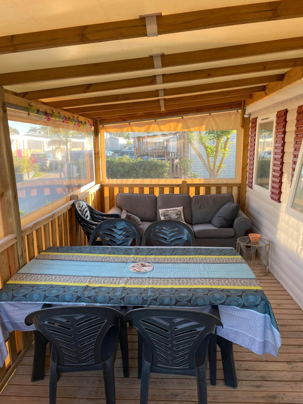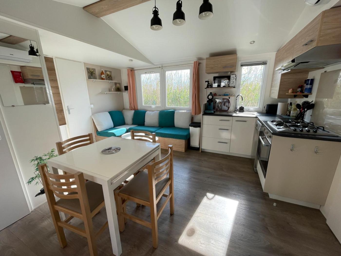 Mobile Home. Featuring a private entrance, this air-conditioned mobile home is comprised of a kitchen, 3 bedrooms and 1 bathroom with a shower and a hairdryer. The well-equipped kitchen has a dishwasher, kitchenware, an oven and a microwave. This mobile home features a washing machine, a coffee machine, a TV with cable channels and a patio. The unit offers 5 beds.