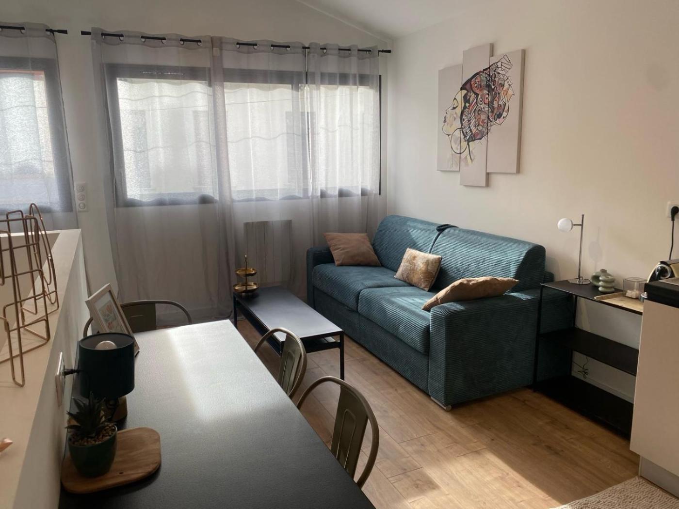 Appartement 1 Chambre. Boasting a private entrance, this air-conditioned apartment features 1 living room, 1 separate bedroom and 1 bathroom with a shower and a hairdryer. The fully equipped kitchen has a stovetop, a refrigerator, kitchenware and a microwave. The apartment features parquet floors, a seating area with a flat-screen TV, soundproof walls, a coffee machine, as well as a dining area. The unit has 2 beds.