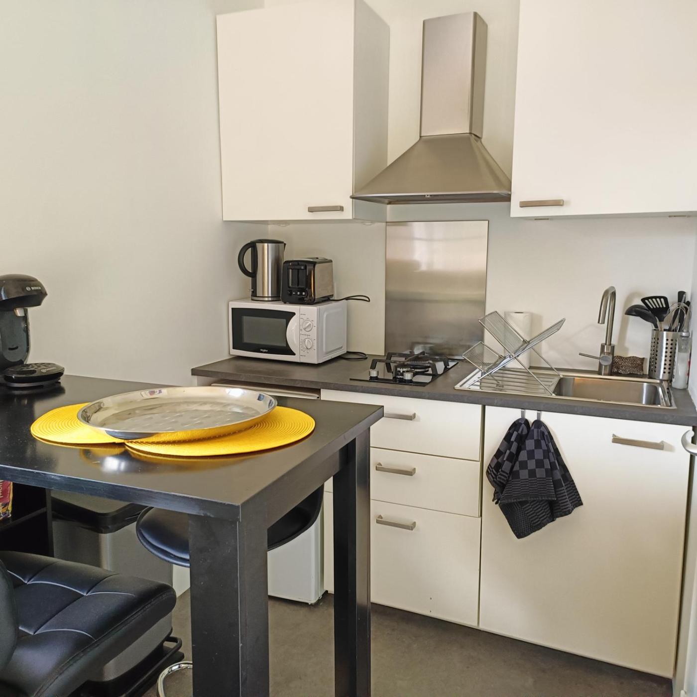 Appartement 1 Chambre. Guests will have a special experience as this apartment features a private pool. Featuring a private entrance, this apartment is comprised of a kitchen, 1 bedroom and 1 bathroom with a shower and a hairdryer. Guests will find a stovetop, a refrigerator, kitchenware and a microwave in the well-equipped kitchen. The apartment also has a barbecue. The apartment offers a flat-screen TV, a tea and coffee maker, a dining area, a wardrobe as well as garden views. The unit offers 1 bed.
