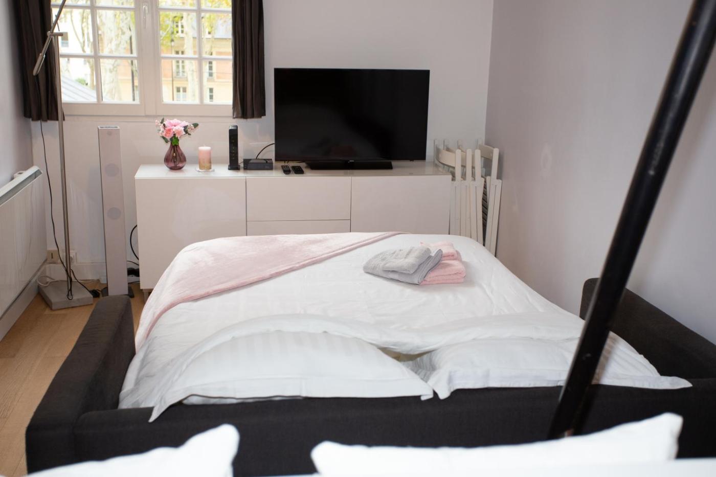 Situé à Versailles, létablissement Le Duplex est un hébergement indépendant offrant une vue sur la ville. Il se trouve à seulement 850 mètres du château de Versailles et à 2 minutes de marche de la gare RER de Versailles.