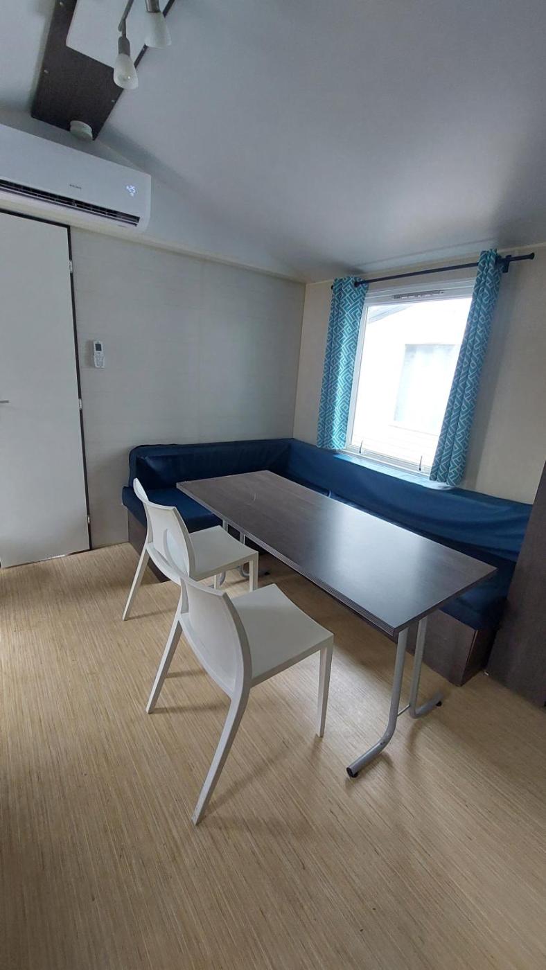 Mobile Home. The air-conditioned mobile home has 3 bedrooms and 1 bathroom with a shower. The mobile home offers a seating area, a dining area, as well as an outdoor dining area and outdoor furniture. The unit has 5 beds.
