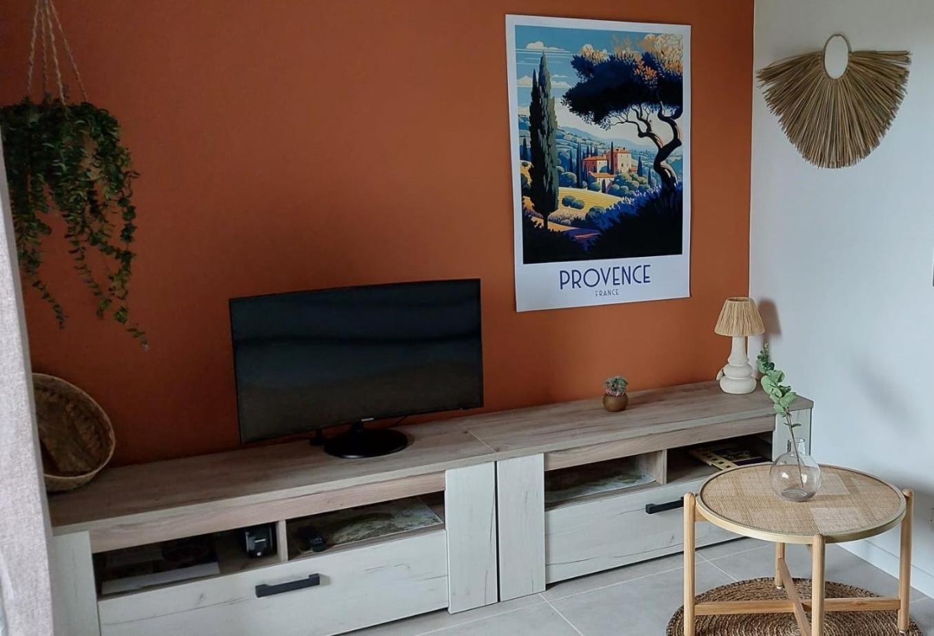 Appartement 1 Chambre. This apartment provides a private pool. This apartment is comprised of 1 bedroom, kitchen, a terrace and 1 bathroom with a shower. The well-equipped kitchen features a stovetop, a dishwasher, an oven and a microwave. Featuring a balcony with garden views, this apartment also offers a washing machine and a flat-screen TV. The unit offers 1 bed.