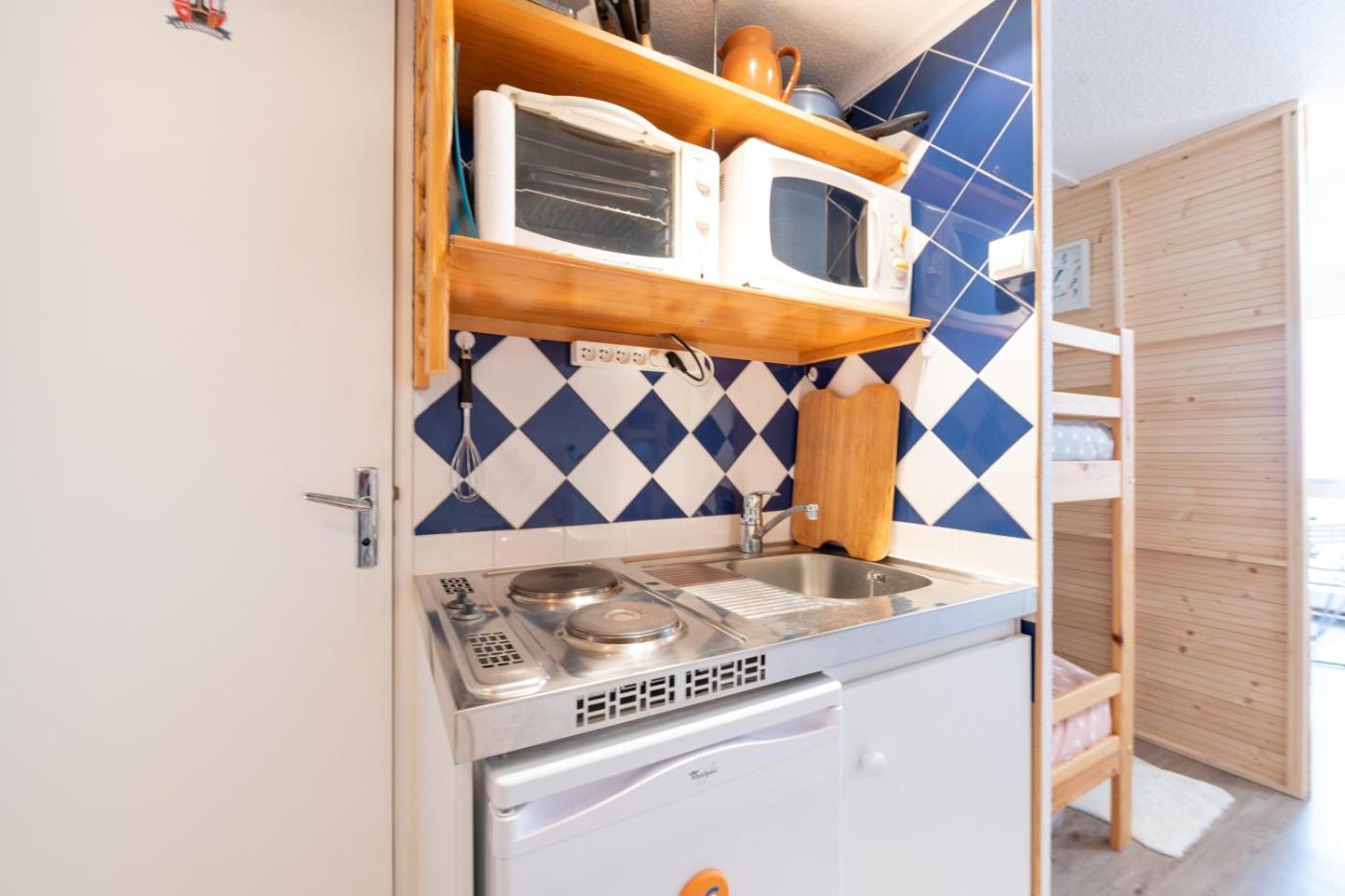 Studio - Vue sur Montagne. Guests can make meals in the kitchen that features a refrigerator, a dishwasher, kitchenware and an oven. The studio features a washing machine, a tea and coffee maker, a balcony with mountain views as well as a private bathroom boasting a shower. The unit has 3 beds.