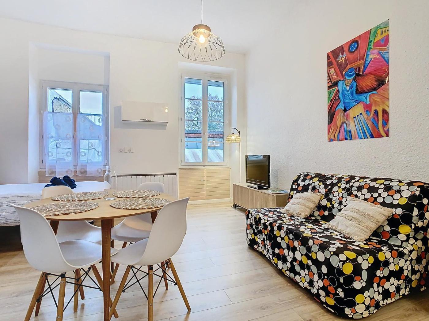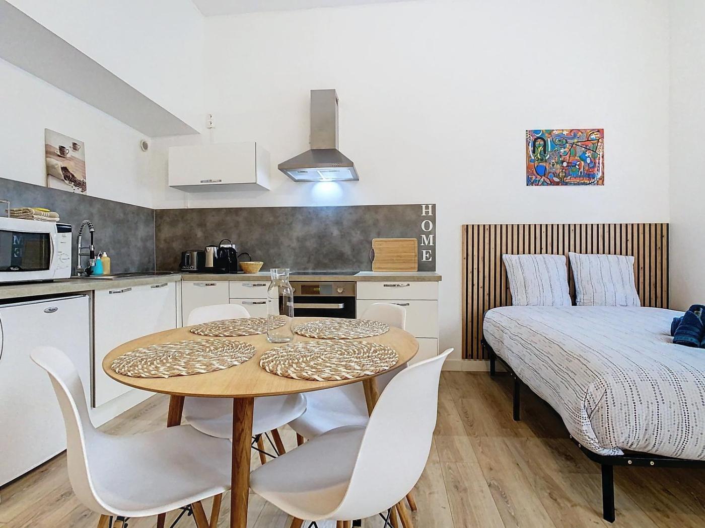 Appartement 1 Chambre. In the well-fitted kitchen, guests will find a stovetop, a refrigerator, kitchenware and an oven. The apartment provides a flat-screen TV, a tea and coffee maker, a wardrobe, heating as well as ancourtyard view. The unit offers 2 beds.